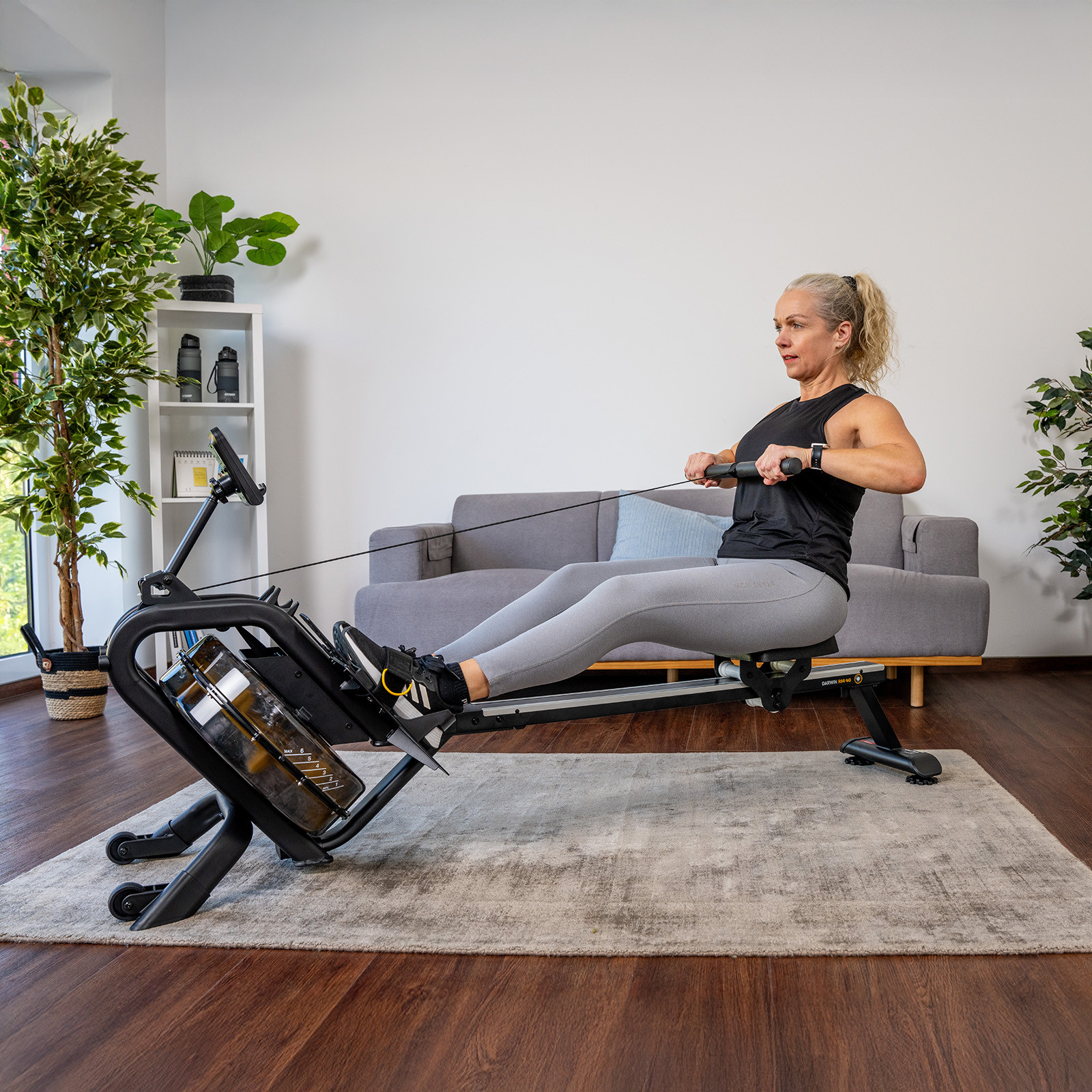 A víztartályos rendszer természetes, folyékony ellenállást biztosít, amely automatikusan a felhasználó tempójához igazodik. Ezért kezdők és haladók egyaránt hatékonyan használhatják. A víz kellemes suhogása nemcsak valósághű élményt nyújt, hanem megnyugtató hanghatással is kíséri az edzést.