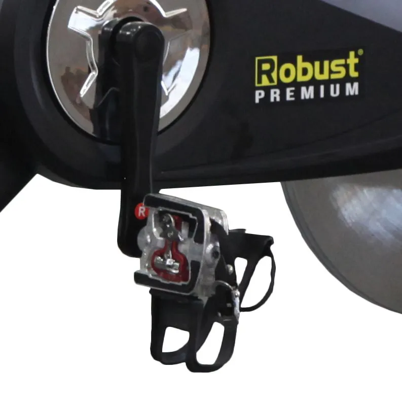 A Robust Premium Sprinter Pro teremkerékpár kiváló választás mindazok számára, akik professzionális szintű, intenzív otthoni edzést szeetnének végezni. A 22 kg-os lendkerékkel felszerelt, masszív vázszerkezetű gép kimagasló stabilitást és egyenletes, csendes pedálozást biztosít az SPD pedálokkal, így valódi országúti kerékpározási élményt nyújt. A manuális dörzsfékes rendszer fokozatmentes ellenállás-állítást tesz lehetővé, így minden felhasználó a saját edzettségi szintjéhez igazíthatja a terhelést.