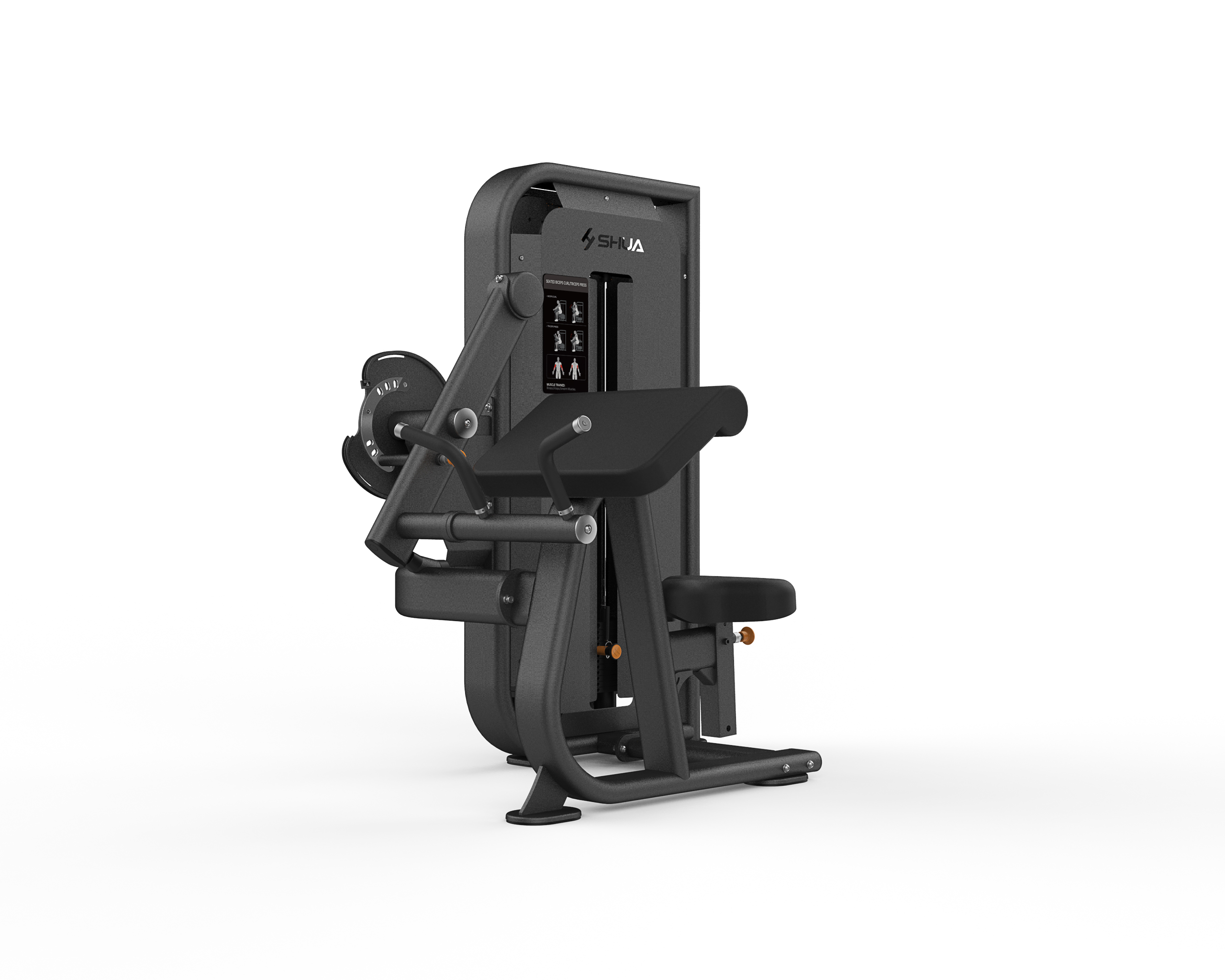 A SH-G6822 bicepsz / tricepszgép a derék- és törzsizmok célzott erősítésére szolgál, miközben stabil és természetes mozgástartományt biztosít. A 68-as sorozatra jellemző prémium anyaghasználat, a megbízható technikai kivitelezés és a kényelmes kialakítás gondoskodik róla, hogy az edzés egyszerű, biztonságos és hatékony legyen minden felhasználó számára.