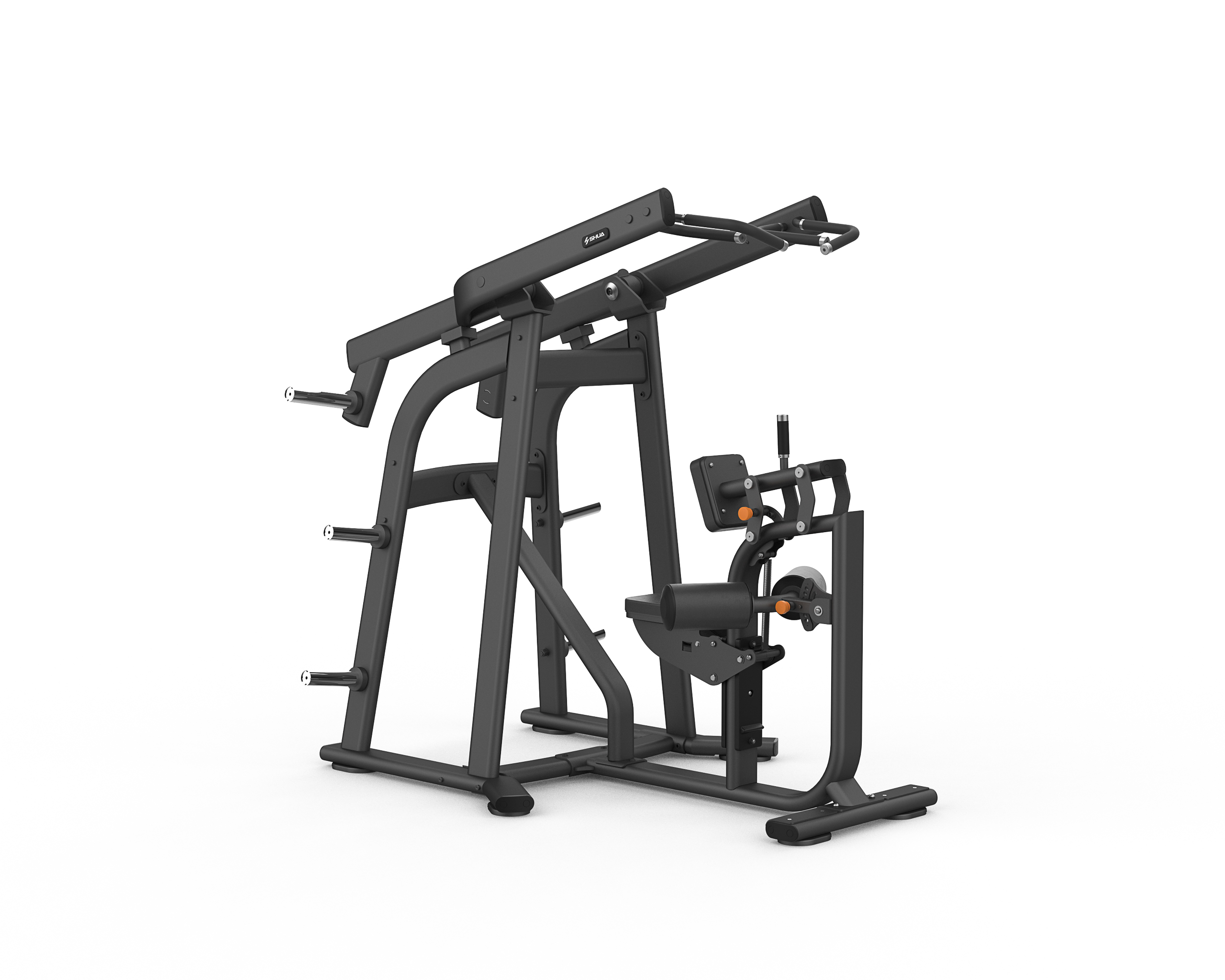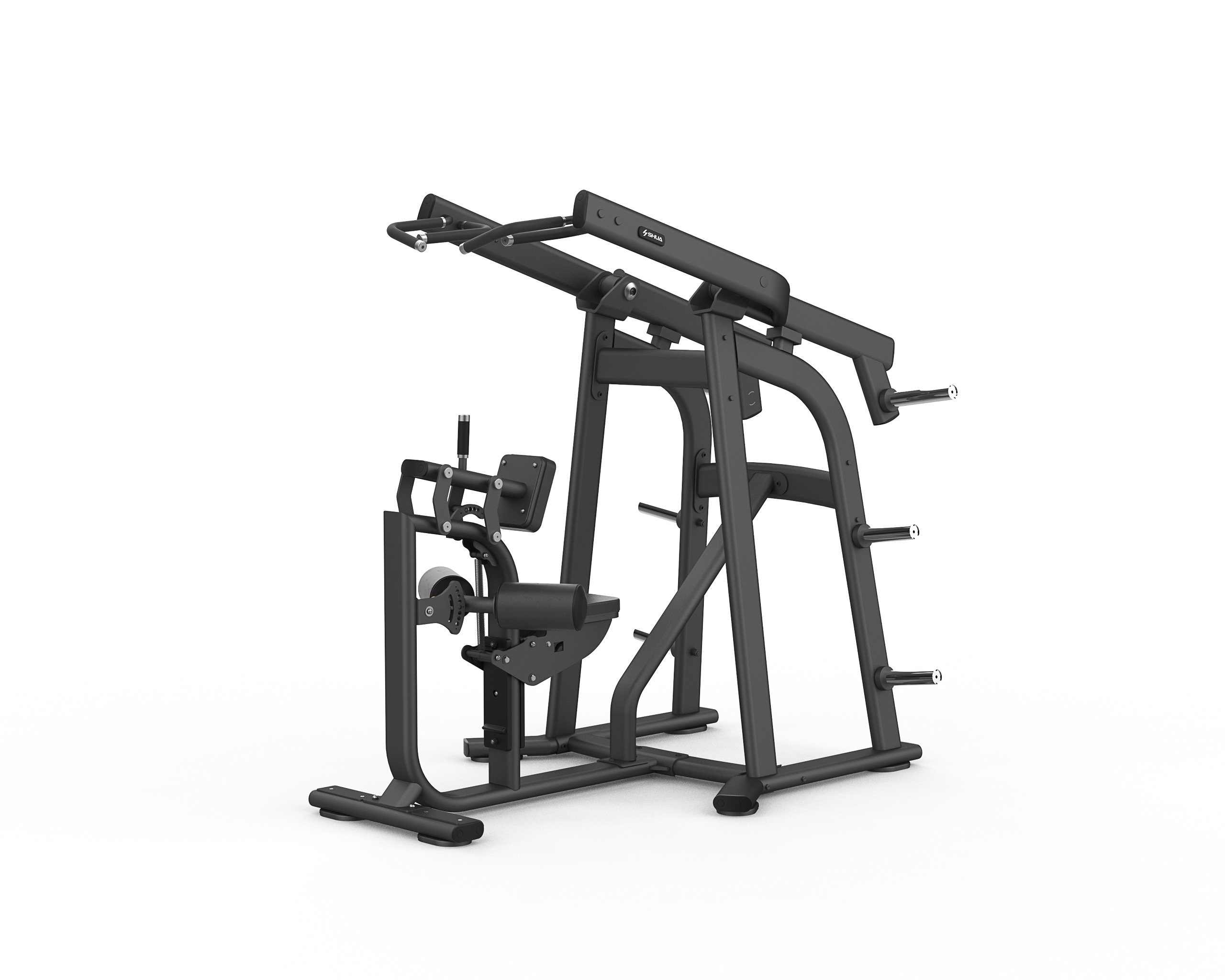 A SHUA SH-G6922 felső evezőgép kifejezetten a hátizmok intenzív és precíz megdolgoztatására készült. A gép kétféle markolatot kínál, így változatos fogásszélességgel és izomaktivációval edzhetsz. A teljesen állítható beállítási rendszer lehetővé teszi, hogy minden felhasználó megtalálja a számára tökéletes pozíciót. Az elöl elhelyezett segédfogantyúk extra stabilitást biztosítanak az egykezes evezésekhez, így a mozgás végig kontrollált és biztonságos marad. A beépített tárcsatárolók rendezett, kényelmes használatot tesznek lehetővé, és gördülékennyé teszik az edzést.
