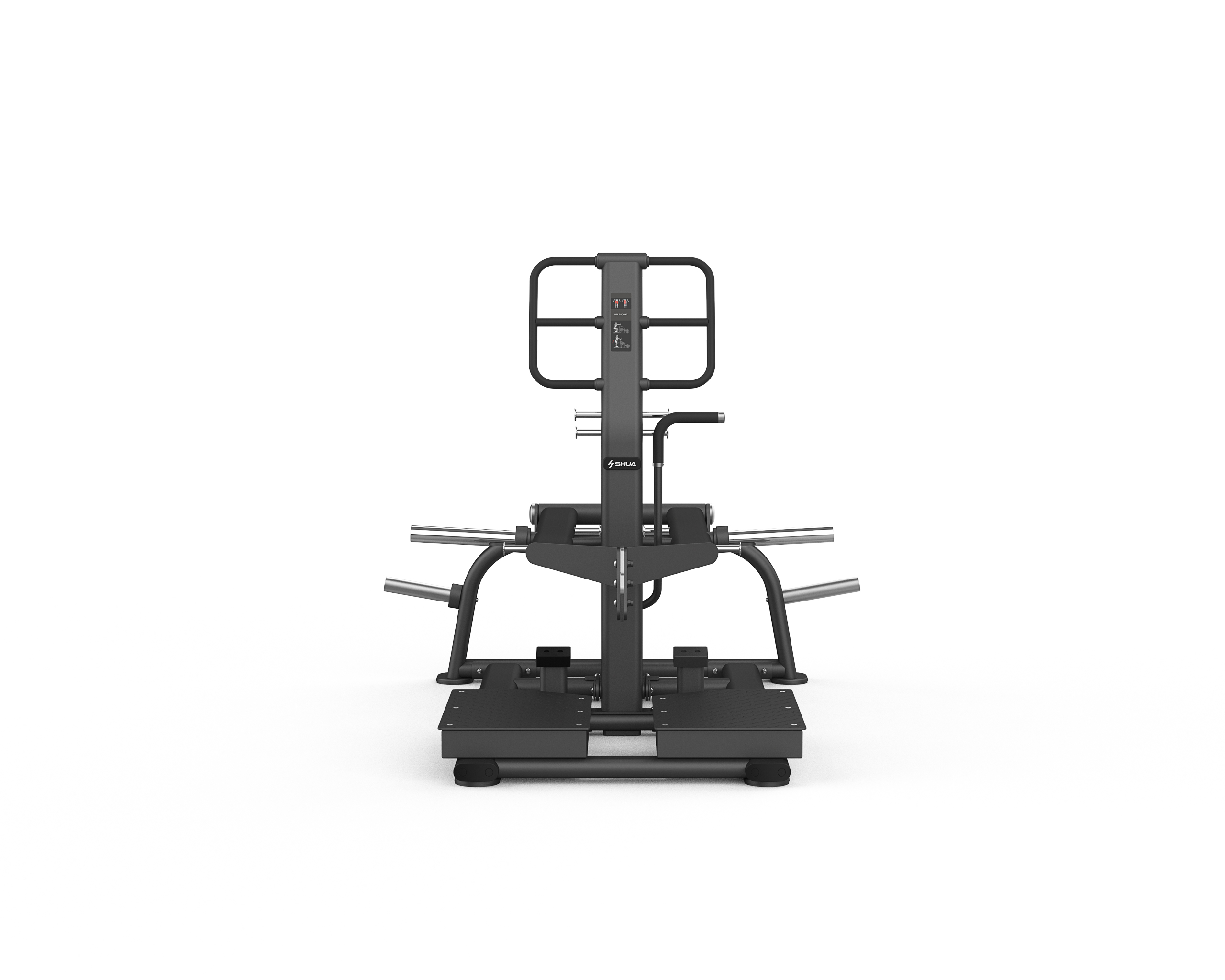 A SHUA SH-G6920 öves guggoló gép – tárcsasúlyos a legerőteljesebb alsótest-edzést kínálja anélkül, hogy a gerincre bármilyen nyomás nehezedne – ideális választás sportolóknak és rehabilitációban résztvevőknek egyaránt. A gép többfogású kapaszkodóval, mágneses biztonsági zárral és állítható karmechanizmussal rendelkezik, így az ellenállás és a mozgástartomány könnyedén személyre szabható. Az integrált gumiszalag rögzítési pontok extra variálhatóságot adnak, amelyek fokozatosan növekvő feszülést és még intenzívebb far- és lábizom-aktivációt biztosítanak minden ismétlésnél. A 69-es széria professzionális kialakítása a letisztult erőátvitel, a kényelmes ergonomikus forma, a prémium anyagok és a precíz gyártás tökéletes összhangjára épül. Mindez tudományosan megalapozott, hatékony és biztonságos edzésélményt biztosít, akár intenzív használat mellett is.