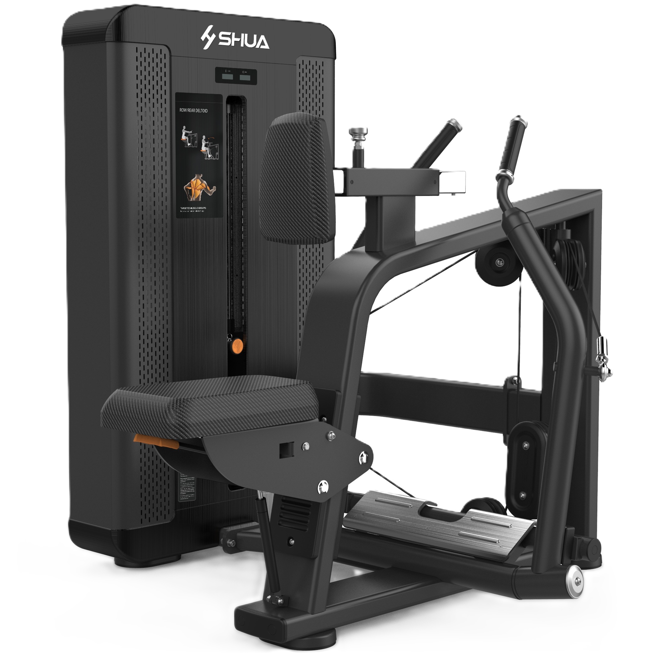 A SHUA SH-G8804 divergáló melltámaszos evezőgép a hátizmok (latissimus dorsi) és a csuklyás izmok (trapezius) célzott erősítésére szolgál, kiváló biomechanikai pontossággal és kényelmes mozgástartománnyal. A kábelrendszer japán, olajozott acélsodronyból készült, amely 189 szálból áll a maximális stabilitás és megbízhatóság érdekében. A gumírozott bevonat sima, csendes működést biztosít, miközben a kábel 1400 kg szakítószilárdságra képes. A SH-G8804 ideális választás azok számára, akik hatékony hát- és vállizom-erősítő megoldást keresnek prémium minőségben.