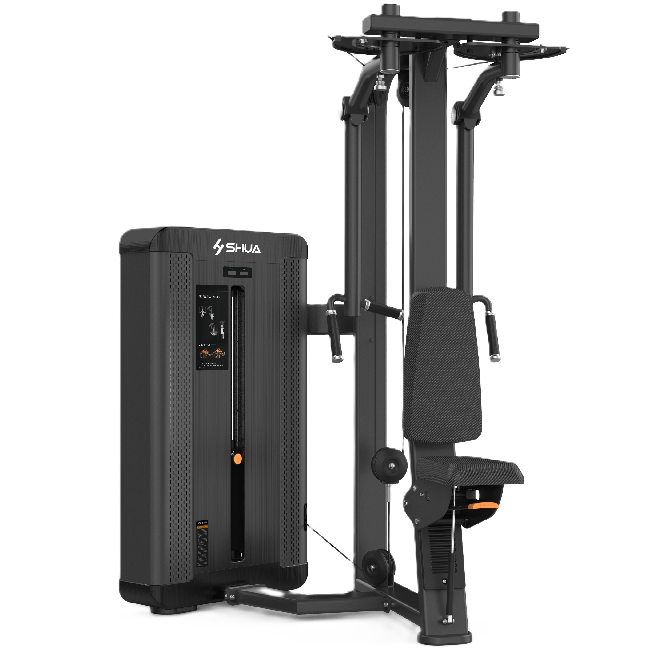 A SHUA SH-G8810 tárogató / hátsóváll gép hatékonyan fejleszti a mellizmot (pectoralis major) és a hátsó vállizmot (deltoid), valamint a csuklyás izmot (trapezius). A gépben található japán, olajozott acélsodrony 189 szálból áll, ami kimagasló stabilitást és megbízhatóságot biztosít. A gumírozott bevonat sima, halk és kopásálló működést eredményez, miközben a kábel akár 1400 kg szakítószilárdságot is elér. A gép ergonomikus kialakítása természetes mozgástartományt és kényelmes edzést tesz lehetővé, így ideális választás a felsőtest izmainak formálásához és erősítéséhez.