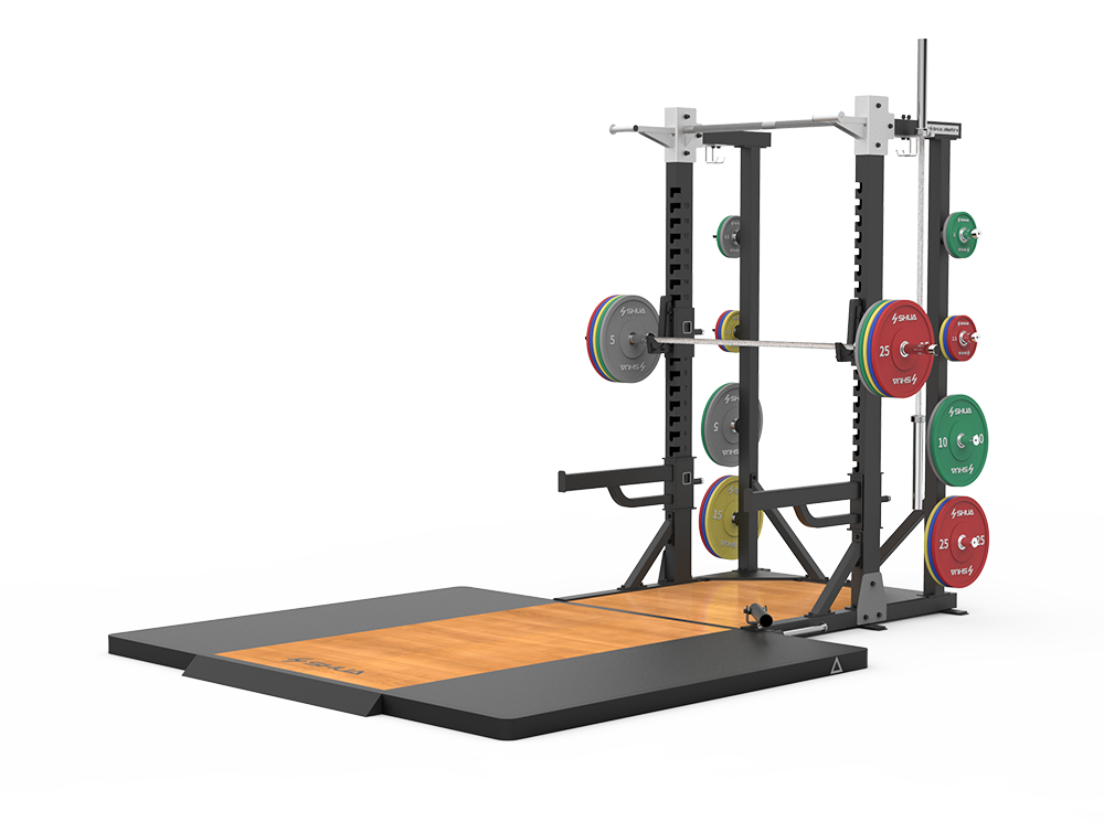 Súlytárcsa-tartó állvány, univerzális rúdhüvely, súlyemelő állvány, vízszintes rúd tartó és gumiszalag tároló – mindez egy kompakt, többfunkciós megoldásban.