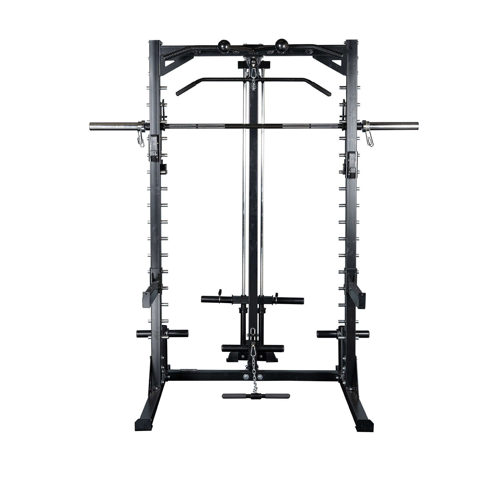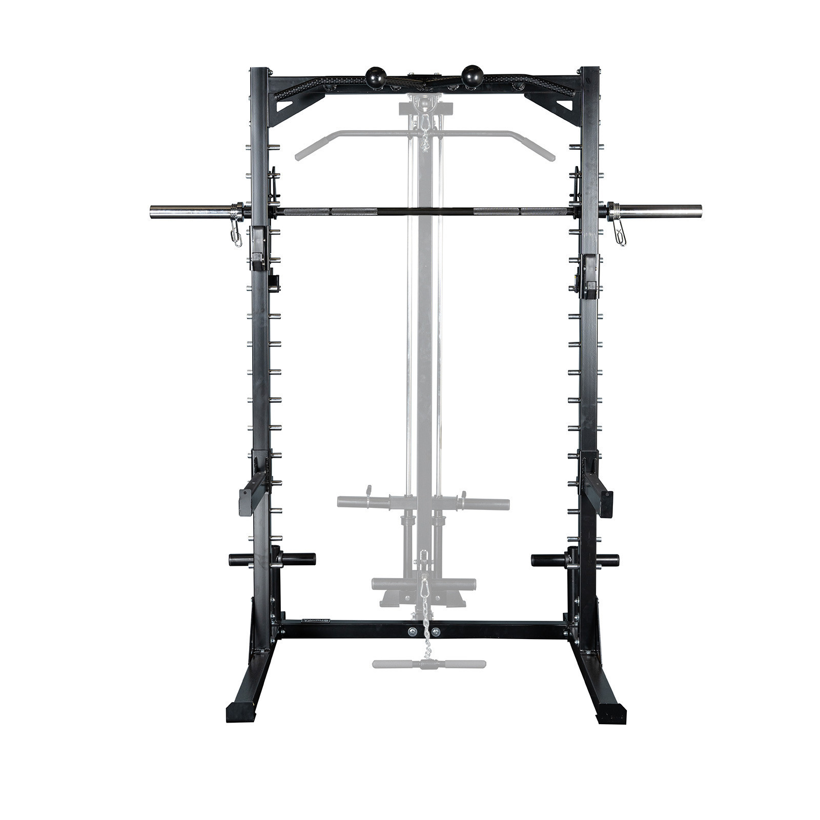 • Sokoldalú edzések: A Smith gép, a guggoló félállvány, a többfogású húzódzkodó rúd, valamint az állítható J-kampókkal és súlytartó karokkal kombinálva teljessé teszi az edzést.