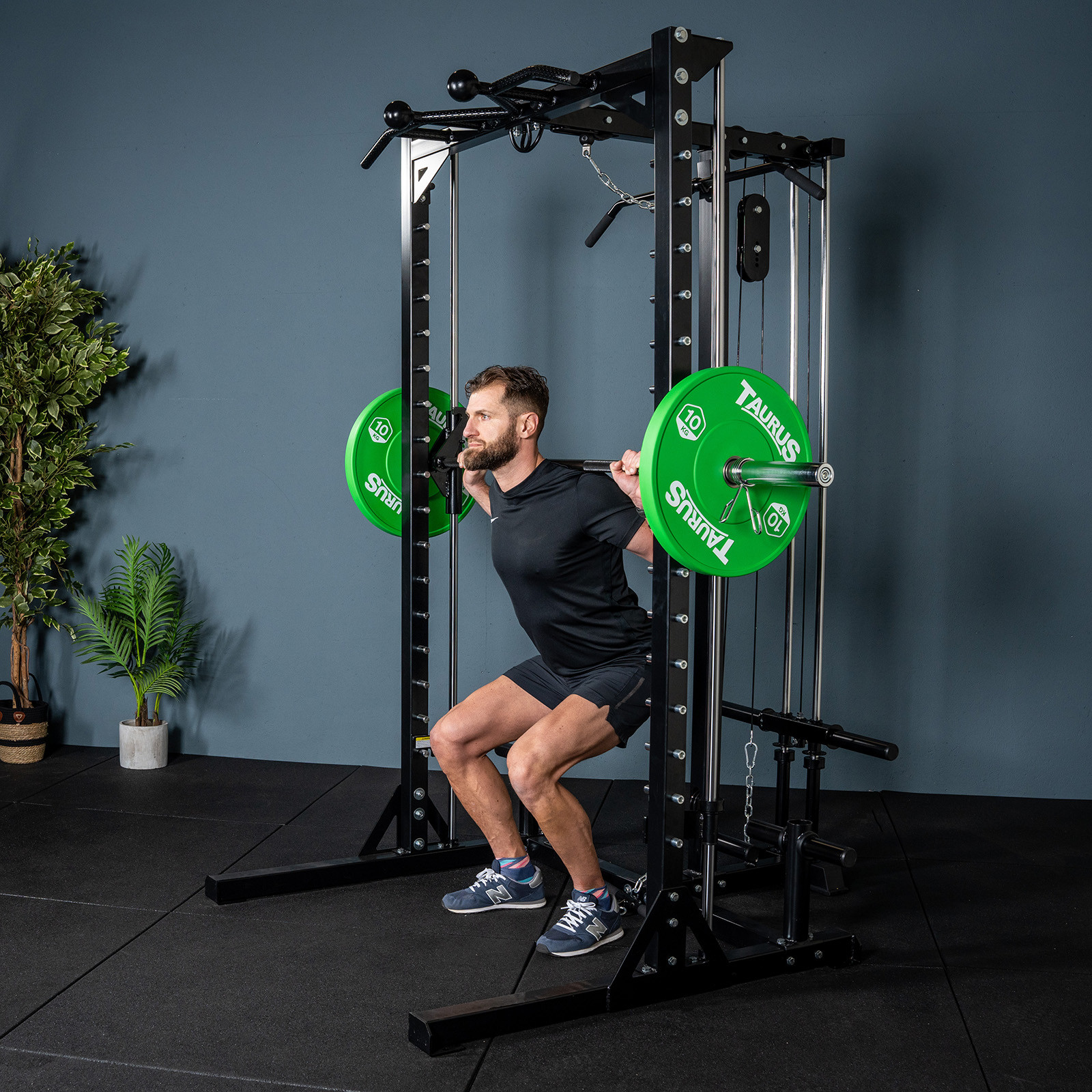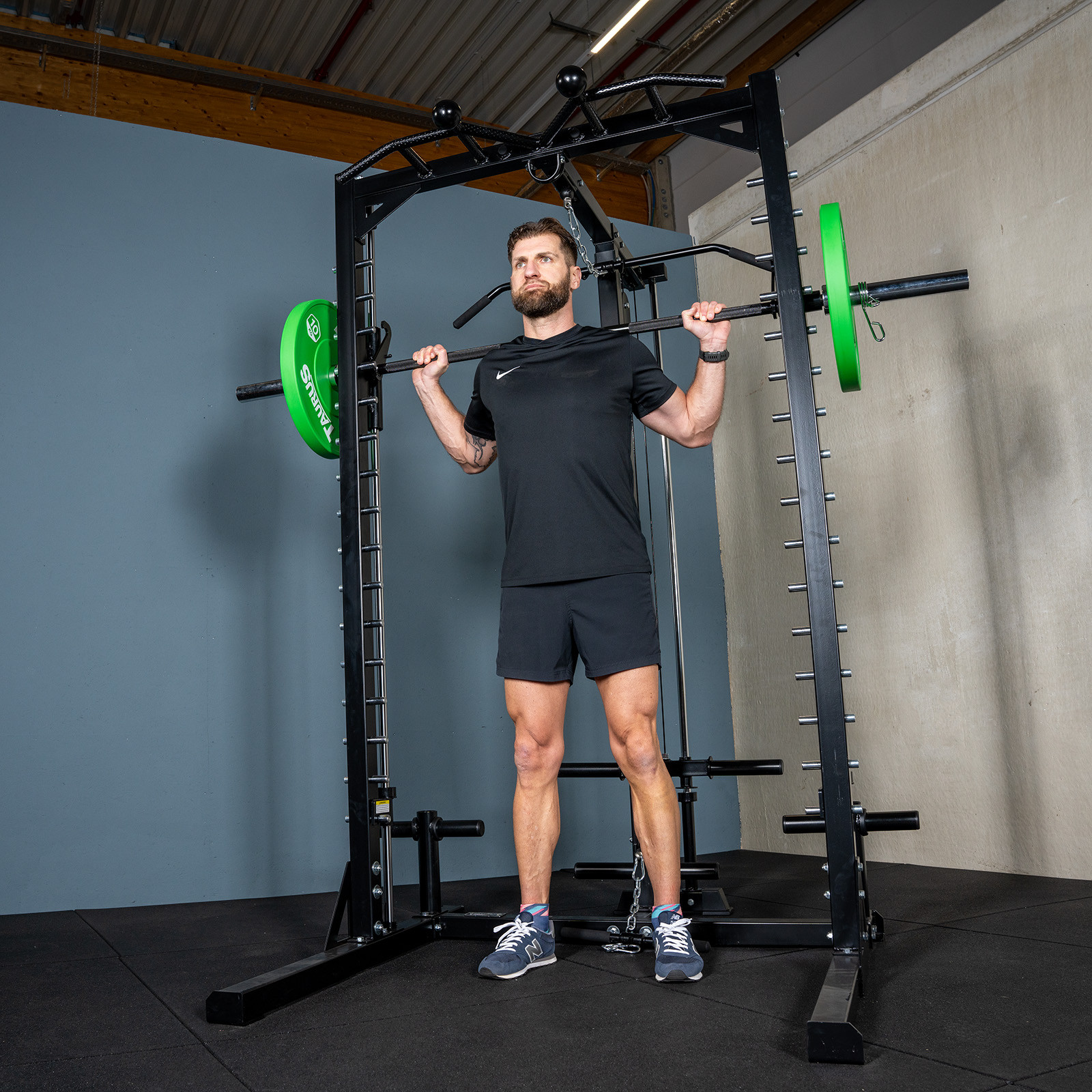 A Taurus MS3 Smith gép egy Smith gépet és egy guggolóállványt kombinál, így tökéletes a komoly erőnléti edzéshez szabad súlytárcsákkal. Ez a kompakt, mégis sokoldalú Smith gép stabilitást, biztonságot és széleskörű edzési lehetőségeket kínál.