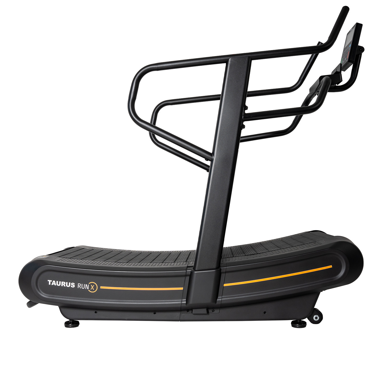 A Taurus Run-X egy különleges, motor nélküli ívelt futópad, amelyet kifejezetten HIIT-edzésekhez, sprintekhez és gyors tempóváltásokhoz terveztek. Mivel nincs motorja vagy bonyolult elektronikája, teljes mértékben a saját erődből hajtod – így a futás természetesebb és dinamikusabb, mint valaha. Az extra hosszú, masszív szintetikus lamellákból készült futófelület rendkívül tartós, ezért ideális a nagy intenzitású, robbanékony edzésekhez.
