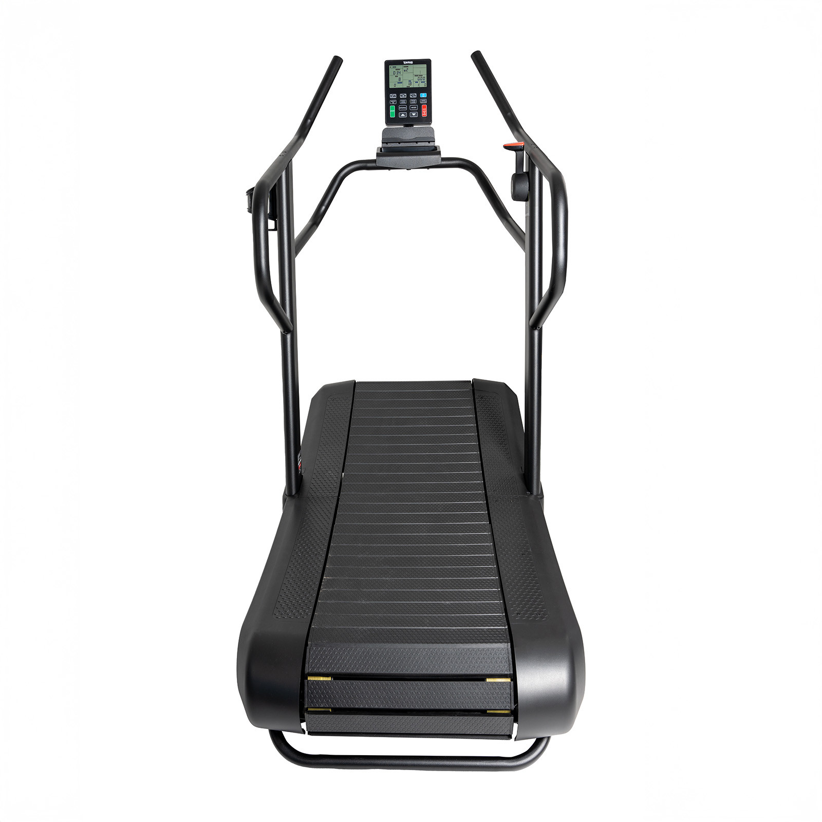 Az ívelt futófelület segít, hogy automatikusan a pálya közepén maradj, és a sebesség mindig a saját tempódhoz igazodjon. Akár sprintelsz, akár kontrollált állóképességi futást végzel, vagy sled push/pull gyakorlatokat csinálsz, a tempó és ellenállás szabályozása teljesen intuitív. A hosszú kapaszkodók segítik a kezdőket a stabilitásban, a haladóknak pedig extra biztonságot nyújtanak a határok feszegetésekor.