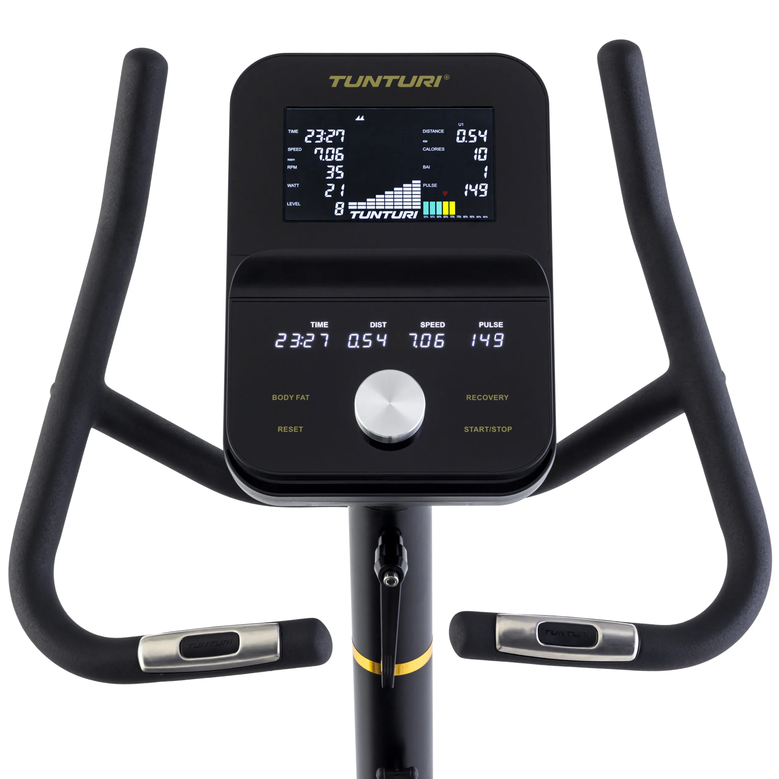 A Tunturi Centuri E100 szobakerékpár ideális mindazok számára, akik szeretik a kihívásokat és a változatosságot. 26 programmal és 48 ellenállási fokozattal a szobakerékpár többféle lehetőséget kínál mind a hobbi, mind a rendszeresen edző lelkes sportolók számára. A Centuri E100 Comfort+ üléssel és Bluetooth kapcsolattal rendelkező intelligens (AI) monitorral van ellátva, az összes paraméter áttekinthetősége és a személyre szabott edzésprogramok érdekében.